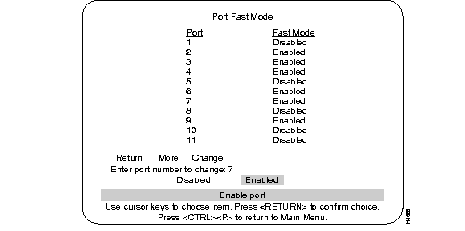 Step 2 At the Spanning Tree menu, select the Port Fast menu. The following menu is displayed: