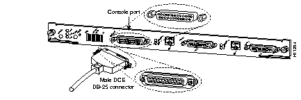 Use a EIA/TIA-232 cable with a female DTE DB-25 connector to connect a modem or other DCE device (such as a CSU/DSU or router) to the auxiliary port on the RSM. (See Figure 26.)