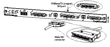 Supervisor engine 100BaseTX (copper) uplink ports accept RJ-45 (Figure 13) or media independent interface (MII) (Figure 14) cable connectors.