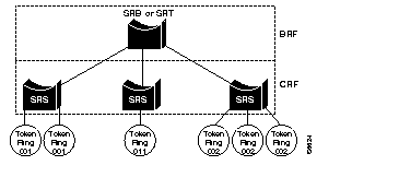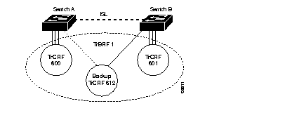 Multiple logical rings or TrCRFs can be interconnected via a single TrBRF. The TrBRF provides either the SRB or SRT switching mode. For source routing, the switch, or network of switches, appears as a single bridge between the logical rings. If SRB is used, duplicate MAC addresses can be defined on different logical rings.