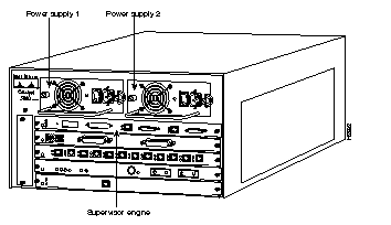 Depending on the Catalyst 5000 series switch model that you are using, there are up to 11 interface slots available on the switch. Regardless of the Catalyst 5000 series switch, interface slot 1 supports a supervisor engine module, which provides Layer 2 switching, local and remote management, and dual Fast Ethernet interfaces. Slot 13 on the Catalyst 5500 switch is reserved for the ATM Switch Processor (ASP) module. The remaining slots are used for any combination of modules for additional Ethernet, Fast Ethernet, CDDI/FDDI, ATM, and Token Ring connections. Figure 2 shows the rear view of the Catalyst 5000 series switch, which provides access to the supervisor engine, all switching modules, power supplies, and fan assembly.
