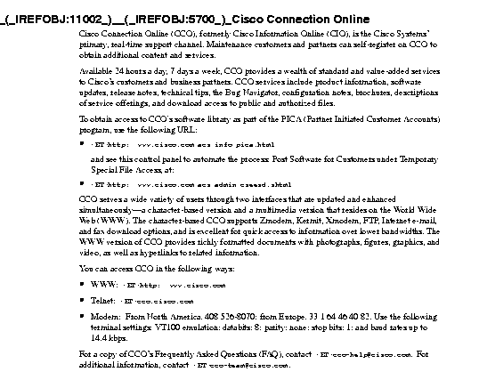 This section contains the latest Cisco Internetwork Operating System (Cisco IOS) software version information at the time of printing. New devices and further specifics on Cisco IOS software support will be announced following this release. Refer to the online release notes on Cisco Connection Online (CCO), formerly called Cisco Information Online (CIO), or on the Cisco Connection Documentation, Enterprise Series CD, or Cisco Connection Documentation, CiscoPro Solutions CD, which are both accessible via CCO.