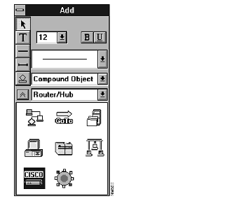 Step 1 From the Add Object palette (see Figure 2-5), click the Connecting Line button (the line segment with two vertical endpoints), then select a line type.