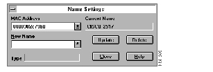 | Name | Assigns a device name to a MAC port address. | Name Settings |