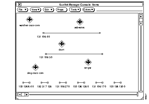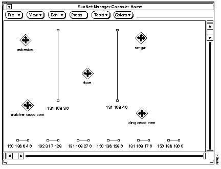 A router can have a number of interfaces. As the router is added to the view, it is also added to a network (represented by a cloud icon in SNM Console), and one for each router interface (with subnet mask applied). These networks are created in the current view as needed. If you choose to manage these subnets, you can use the SunNet Manger Discover tool to identify the devices in the subnet.