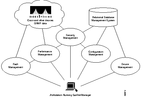 Figure 1-1 illustrates the general relationship of CiscoWorks functions.