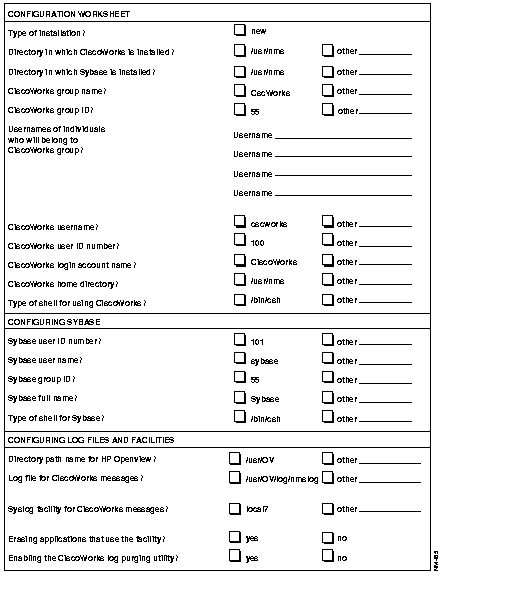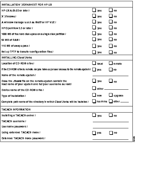 This section explains each item on the Configuration Worksheet. This information is required for the configuration of CiscoWorks. For detailed information on the /etc/passwd and /etc/group files, usernames, user IDs, group names, and group IDs, refer to the HP-UX system manuals.