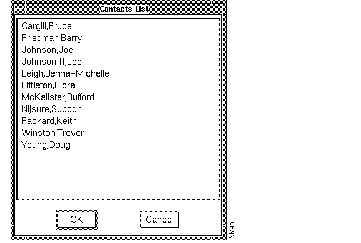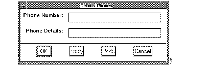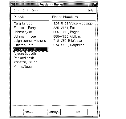 From the People>Phones window, you can click on one of the command buttons to add or modify information about a particular support person. To add or modify information about the individual's telephone number, select one of the corresponding commands from the Edit menu.