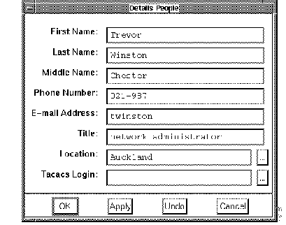 The CiscoWorks database links the names, telephone numbers, and other people-specific data to their addresses. This linkage allows you to quickly find essential contacts, such as names and addresses of troubleshooters, vendors, device administrators, or simply an e-mail address or telephone number.