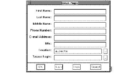 The Locations Window represents a reservoir for network addresses of people, the location of network devices, and any other network-associated matter. The information you enter in the Locations window goes into a central repository called Chooser List for locations. With the Chooser List, you can add or update locations data whenever you work with the Details People window or the Device Location window.