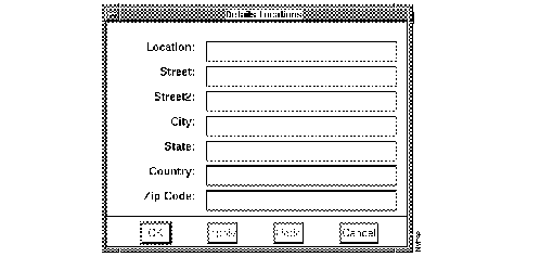 You see the Locations window, where you can add, modify, or delete location information about the contacts people. You can also search for location data.