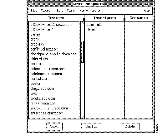 The Device Management application allows you to add, delete, or modify information in the CiscoWorks database or synchronize the device lists of the CiscoWorks database and the platform database.