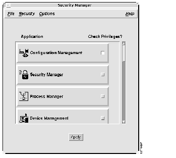 Figure 6-1 illustrates the Security Manager window. Table 6-1 describes its components.