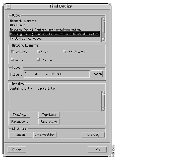 When this Query mode is selected, the Find Device window, shown in Figure 3-8, contains three sets of Topology and Parameters buttons. See "Results - Topology Button(s)" and "Results - Parameters Button(s)" for information about these buttons.