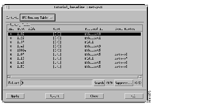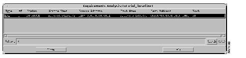 A requirement file set can also be loaded by double-clicking on an entry in the Requirement Files list. The ipx_test file set is now ready to have connectivity requirements analysis performed. The results of the analysis are viewed from the tutorial_baseline Requirements Analysis window, partially shown in Figure 10-8. That is, the status of each connectivity requirement entry loaded for analysis is shown. One existing path was found allowing the connection between the two end systems (netsys8.ether1/2.0.es.ipx.1 and netsys9a.fddi3/0.0.es.ipx.1).
