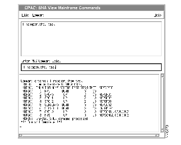 The Host Command Server resides on the UNIX workstation. It sends commands to the mainframe and receives the responses; it opens and binds a TCP/IP socket or LU 6.2 connection over which you can issue commands to the mainframe. The Host Command Server also establishes connections with the Host Connection Interface over which it receives the mainframe command responses. Using the Host Command Server, you can send commands to VTAM, to the MVS operating system, and to the NetView or SOLVE:Netmaster network management application at the mainframe. You can send commands and display the responses using the SNA View Mainframe Commands window, as shown in Figure 1-1.