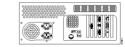 Figure 2-7 shows indicators, switches, and ports on the rear panel of the FDDI Dual Attachment Station (DAS) SwitchProbe model. The rear panel of the CDDI and FDDI single attachment station (SAS) SwitchProbe models are similar, but they have only one connector of the appropriate type on the CDDI or FDDI interface card. This figure also shows the interface cards installed. In Token-Ring configurations, the Ethernet card shown in the center of the illustration is replaced with a Token-Ring card.