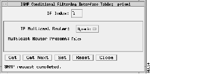 The IGMP Conditional Filtering Interface window, shown in Figure 11, displays information about interfaces that use IGMP conditional filtering.