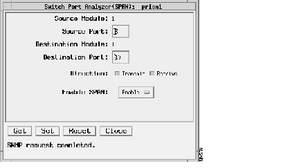 The Switch Port Analyzer window, shown in Figure 3, is used for setting parameters so that ports can be monitored.