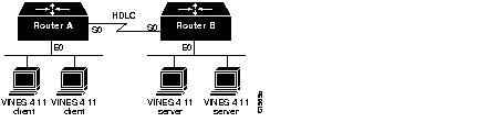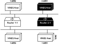 For an example of how to configure VINES routing for various network topologies that include serverless networks, see the "Serverless Network Configuration Example" section at the end of this chapter.