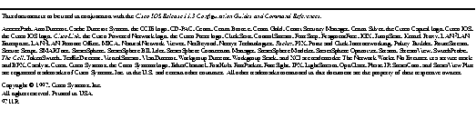 For more detailed information about the features and caveats in these release notes, refer to the Release Notes for Cisco IOS Release 11.3, which contains features and caveats for all 11.3 platforms. The electronic documentation can be found on the Documentation CD-ROM and on Cisco Connection Online (CCO). (Refer to the "Online Navigation" section for more details.)