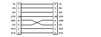 On an RS-232 cable, swap pin 6 (DSR) and pin 8 (CD) at one end.