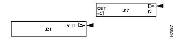 L1 and L3 can be set to work as V.28 or V.11. These two lines have another termination to determine the electrical interface type--J20 for line 1 and J21 for line 3. (See Figure 5-6 and Figure 5-7.)