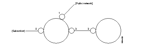 Subscribers without facilities Subscribers with facilities PSTN public network DTE inter-node DCE inter-node Physical X.75 DTE inter-node Physical X.75 DCE inter-node VX.32 public network (TRANSPAC) TRANSPAC inter-node TRANSPAC inter-node |