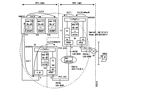 Two RFCs define the extension of MIB II to described the Frame-Relay interface. RFC 1604 for DCE and RFC 1315 for DTE. Only global physical interface management is proposed and restrained to the description in the MIB II of the interface group. Transmission groups is for subsequent study. One * means not used, ** means not available.