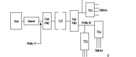 | Group 2: | Parameters defining the X.25 Interface of the user line facing the X.25 node, represented by the internal switch of the FastPAD. This switch manages the virtual circuit between the network line and the user line. |