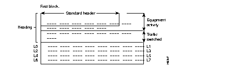 Like a type 1 block, the type 2 block is made up of three zones: equipment activity, switched traffic and links.