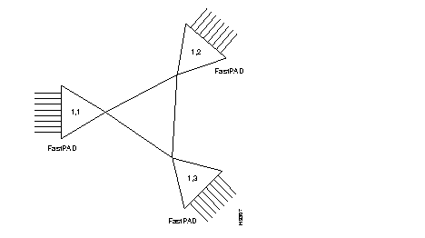 For example, assume FastPAD [1,1] and [1,2] have 8 VFC-01 cards installed and all are configured into Hunt Group A, and these two FastPADs are connected to FastPAD [1,3] as shown in Figure 9-1.