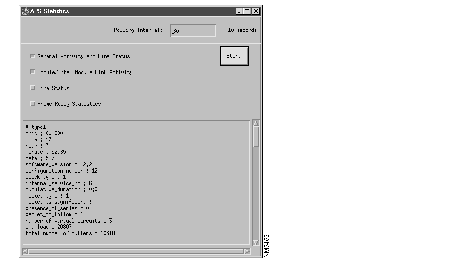 After a legal Type is selected, and a legal interval is set in the interval box, the Start button will be activated. To start statistics polling, click on the Start button. After the delay, output from the statistics will be displayed in the output display.