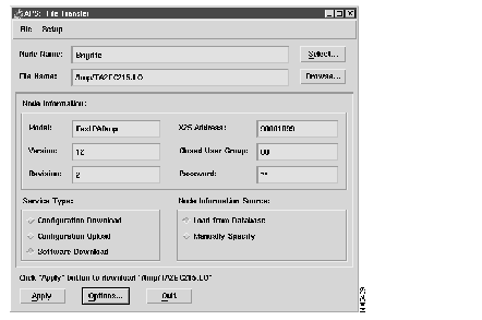 The file transfer program aps_ft can run in batch mode, in which case no X server connection would be required. This is especially useful when the operator uses a shell script to invoke aps_ft to download a new version of software to many FastPADmp/mpr nodes overnight since software downloading is time consuming.