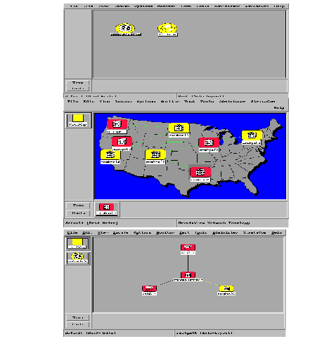 In addition to the large Network Topology map, there is also a small Network Overview map that appears in the lower right corner of the screen. This small map provides an overview of the entire network. This overview of the network can be useful to look at when zooming is used in the Network Topology map resulting in a display of only a portion of the network.