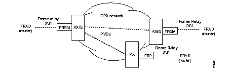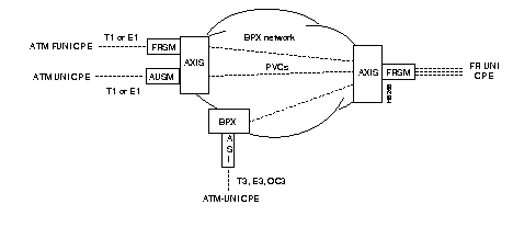 Using AXIS, FR-ATM network interworking permits a permanent virtual connection to be established between two frame relay service users over a StrataCom or multi-vendor network. Across the network the traffic is carried in ATM cells.