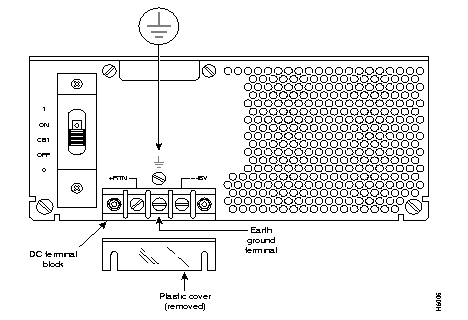 Step 6 Terminate the DC input wiring to a DC source capable of supplying at least 40 amperes. A 40A dc circuit breaker is required at the 48 VDC facility power source. An easily accessible disconnect device should be incorporated into the facility wiring. Be sure to connect the ground wire/conduit to a solid office (earth) ground.