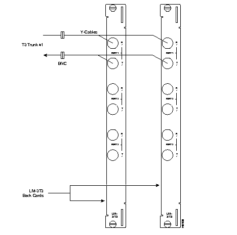 Figure 2-26: Connecting T3 Cables to BPX LM-T3 (BNI T3 backcard)