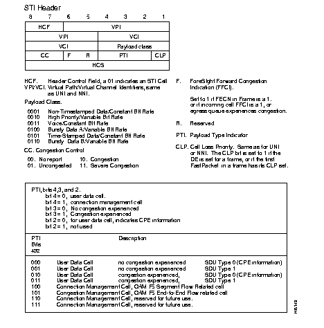 Some of the VCI bits have been reserved in the STI header type to implement ForeSight congestion management control, unique to StrataCom networks, refer to Figure 7-5 and Table 7-2.