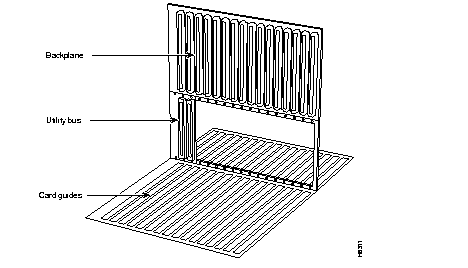 In the IGX 32, the upper and lower card cages are slightly different. The upper card cage has a utility bus beneath the backplane for the NPMs and SCM. See Figure 2-24. The lower card cage in the IGX 32 has a backplane with no utility bus because only service cards exist on the lower shelf.