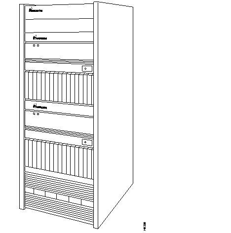The stand-alone enclosure holds all of the system modules, power modules, power supplies, and cooling fans. The IGX 8 cabinet contains one eight-slot card cage with a backplane into which front cards plug, three auxiliary slots, a fan tray with four fans, an exhaust plenum, a power entry module, and an optional AC Power Tray that holds up to four power supplies. Figure 2-3 is a front view of the IGX 8 stand-alone.