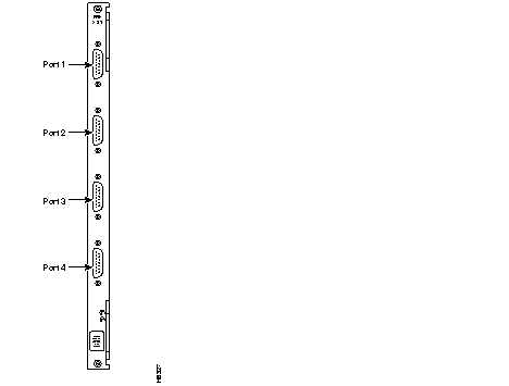 The SDI card is a synchronous data interface back card that directly connects to a front HDM card. Each SDI card has four connectors and provides the physical and electrical connection interface to four data ports. Each port is independently configurable for DTE or DCE mode, baud rate, and so on. One for one port redundancy is provided with a second card set and a standard Y-cable arrangement.