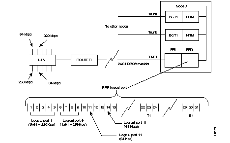 For voice using PCM or ADPCM, the UVM can operate in either 24-channel mode (T1) or 30-channel mode (E1). If the compression is LDCELP, the UVM supports 16 channels but can pass the remaining DS0s on a T1 or E1 line to another UVM for processing. You assign the circuits on a UVM hop on a per-timeslot basis within a T1 or E1 frame.