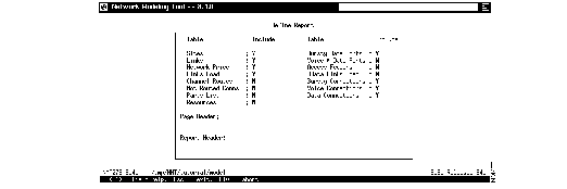 - Define Report--Select which tables to include in a report. Figure 2-7 shows the Define Report window. In this window you can specify the contents of the report and also add a page header and a report header..