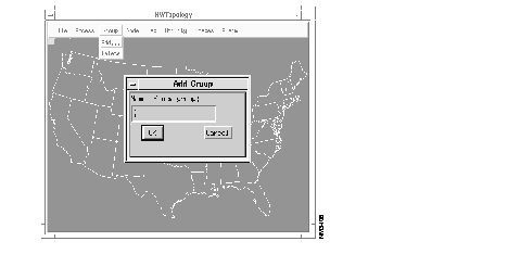 This menu converts your cursor to an umbrella symbol. With this cursor, select the network icon targeted for grouping. The Add Group dialog box then appears.