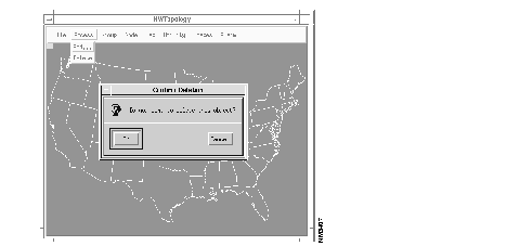 Use this menu to remove a selected access node from the topology map. The Access-Delete command converts your cursor to a skull-and-crossbone symbol. Use this cursor to select the node targeted for deletion.The Confirm Deletion dialog window appears following your selection. Click he OK button on this window to complete the delete process.