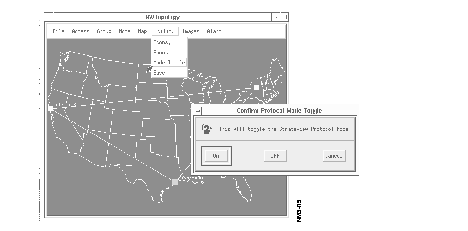 Use this menu to toggle the display of the background map to either ON or OFF. If you want to change the type of map shown in your topology work area, use the Map Select menu.