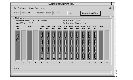 Shelf View This region contains a graphical display of the cards in the interface shelf. The cards are represented as buttons. The card type is printed on the card. Under each card is the slot number. You can select one card at a time for menu item actions.