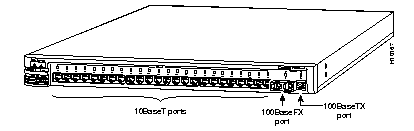 - Catalyst 1900C--24 10BaseT ports and one AUI port with one 100BaseTX port and one 100BaseFX port