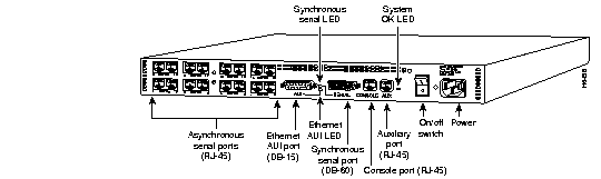 The Cisco 2500 access server series (see Figure 38 through Figure 41) provide a variety of models designed for small office and remote site environments. Each model is a fixed-configuration router that supports at least two interface types. Each access server comes standard with Flash EPROM technology for simplified software maintenance. For software, the Cisco 2500 access server series offer a wide choice of feature sets, so you can select the appropriate protocol set for your network environment. These feature sets range from IP and bridging-only to a feature set containing the full array of Cisco's software functionality.